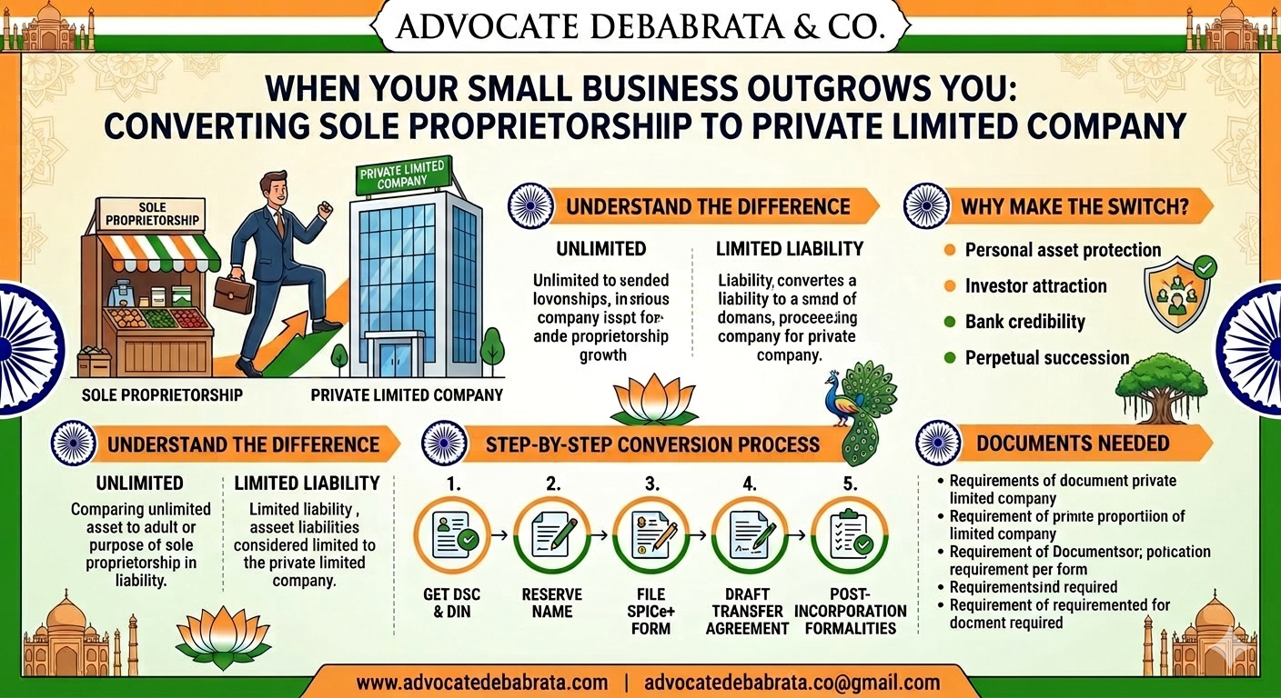 At Advocate Debabrata & Co., we handle the entire conversion process — from name reservation and incorporation filing to GST migration and post-incorporation compliance — so you can focus on actually running your business. 📧 advocatedebabrata.co@gmail.com
